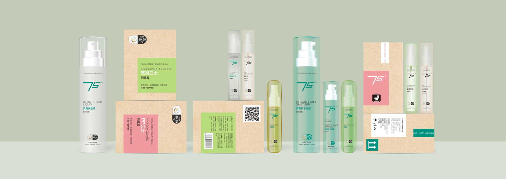 75°是無甲醇的醫(yī)用級(jí)酒精,安全、健康、衛(wèi)生,我們選擇了牛皮紙作為75°品牌外包裝紙,表達(dá)了品牌環(huán)保綠色的形象,選擇干凈利落線條的瓶體,再配合綠色、粉色、藍(lán)色、黃色等比較清爽的顏色,傳達(dá)75°品牌的干凈、衛(wèi)生、消毒、健康的功效,內(nèi)外結(jié)合,更能攻下消費(fèi)者的心。 。