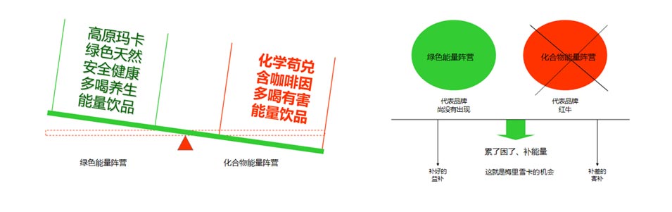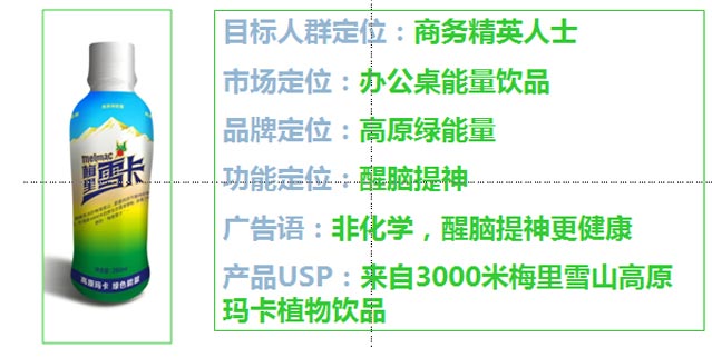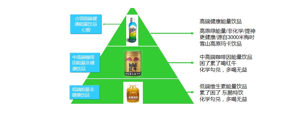 針對我們的目標,不做市場的跟隨者,而是作為起義者、挑戰者的姿態出現,切開紅牛、東鵬的市場,找到并占領梅里雪卡的市場區間。
