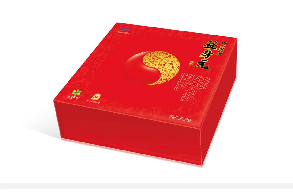 “天圓地方”是古代科學對宇宙的認識。“內證”是古人認識宇宙的主要方法,而這種方法是按照人體生命一定的能量循環模式不斷加強人體自身的能量,從而達到超越普通大眾的感知能力。所以我們在禮盒的設計上應用這種文化理念,外在方正,內里圓潤,符合中國人的審美觀念,不斷通過這種能量的循環而增強人體的健康能量,也體現益身元的保健品的定位。