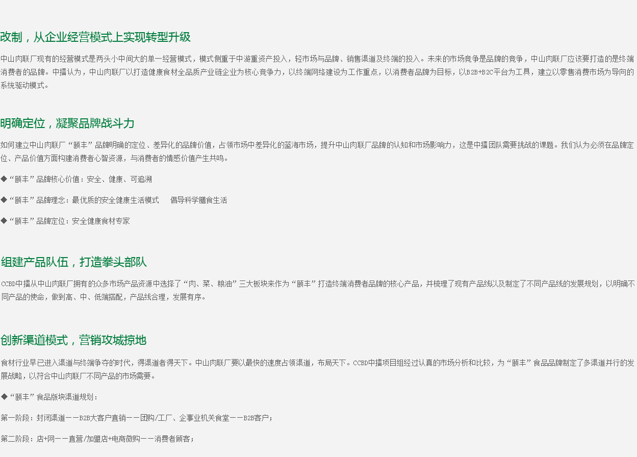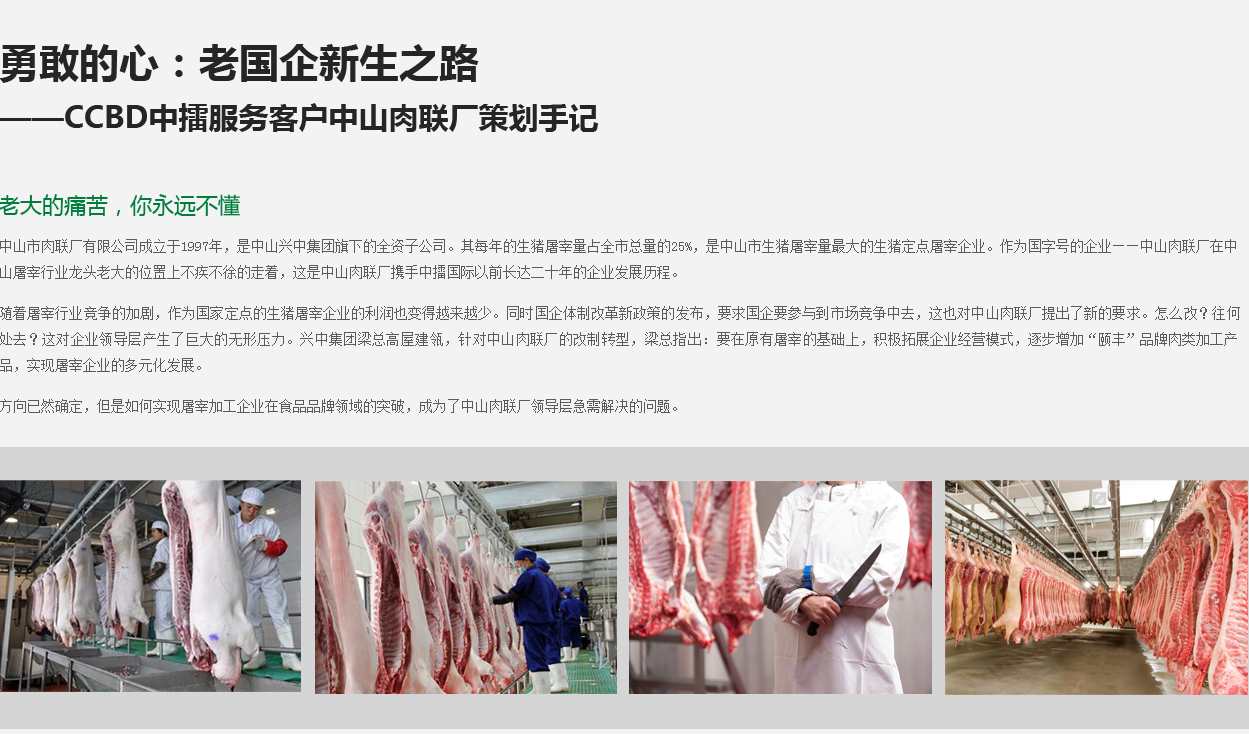 中山肉聯廠最終將成為一個傳奇,因為在政企不分的“國”字號企業里,能夠大膽革新,進行全新的品牌嘗試是不多見的。與CCBD中擂的合作,給這個處于困境中的企業帶來了全新的發展思路和轉型之機。我們相信,萬事開頭難,只要改革創新定能給企業帶來全新的發展,開拓更廣闊的市場空間。