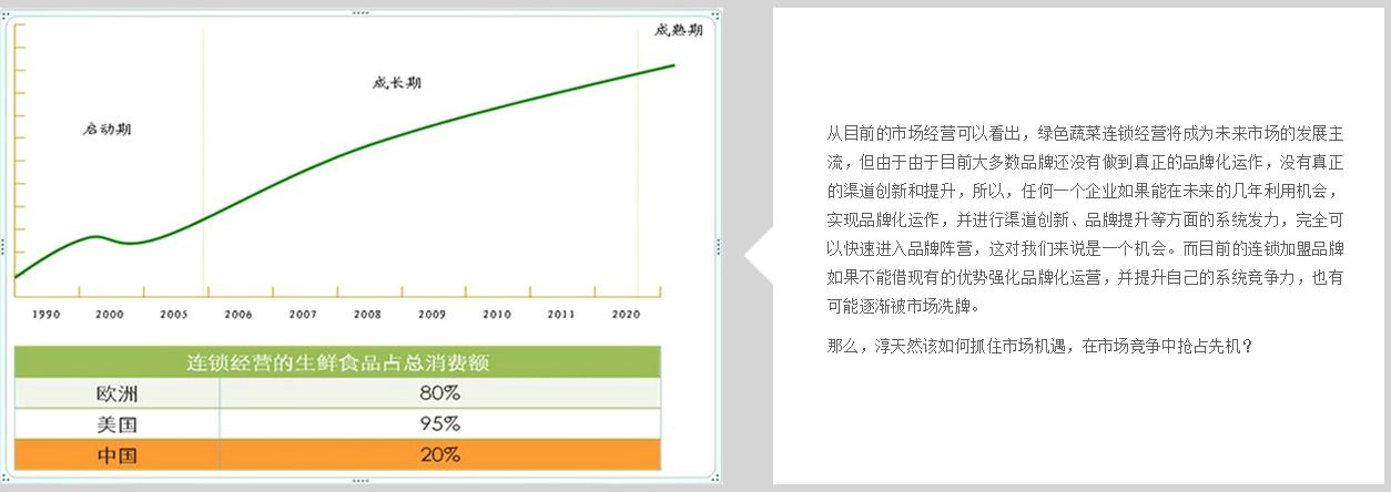 以“原生態(tài)”作為品牌的核心價(jià)值,詮釋淳天然自然成長(zhǎng)、綠色天然、泥土氣息、健康安全、新鮮美味的品牌理念,滿足目標(biāo)消費(fèi)群體對(duì)綠色、天然、健康、放心食品的認(rèn)同與向往,成就中國(guó)鄉(xiāng)土蔬菜連鎖渠道第一品牌。