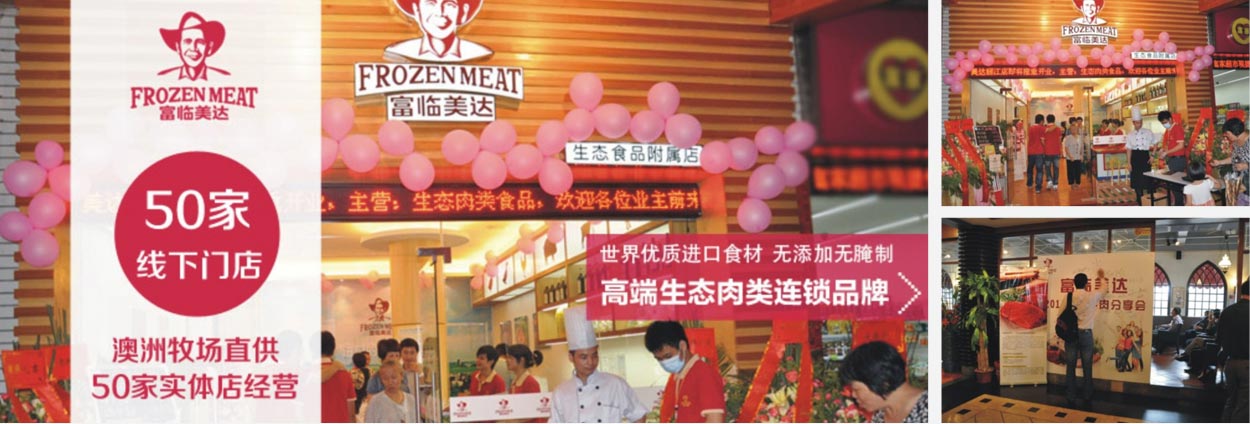 結合調查分析結果,中擂為富臨美達設計了線上+線下相結合的e化商業模式,即富臨美達網絡商務平臺+富臨美達社區連鎖實體超市的雙線運營,期望在冷凍肉類產品領域打造一個類似于“國美模式”的渠道運營平臺。