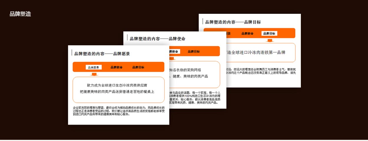 通過上面的分析,中擂基本上確定了富臨美達即將要走的方向——搶占全球進口冷凍肉連鎖第一品牌的位置,以純進口、原生態、口感好為產品概念,以社區廚房、貼心服務為品牌概念,以全球進口生態冷凍肉類產品第一品牌為品牌發展方向。致力成為全球進口生態冷凍肉類供應商,把健康美味的肉類產品送到普通老百姓的餐桌上。