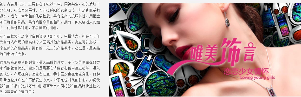 國內首飾市場越亦成熟,競爭越發激烈,沒有靈魂的品牌是無法在這個殘酷的市場中立足的。卡曼芙品牌探索建立的過程,也是尋求消費者內心需求的過程。直擊消費者情感需求,精準定位女人心智,以鉭金首飾為概念切入網購市場,最終開啟一個彩金首飾的時代。讓平實的女性耀麗起來也,讓卡曼芙成長起來。