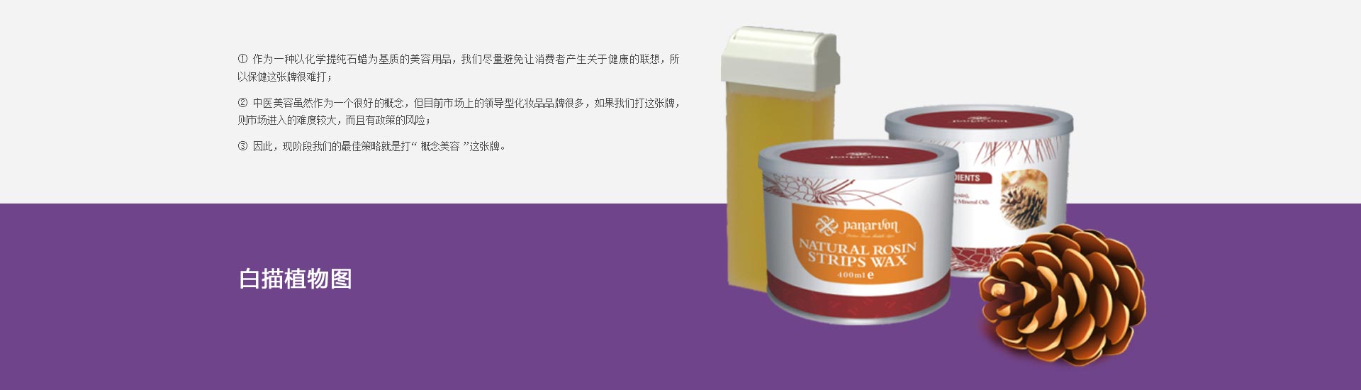 “概念美容”這張牌該怎么打?才能有效的區(qū)隔競爭品牌。打什么樣的概念,才能讓我們以一個鮮明的形象出現(xiàn)在消費者的視線。讓我們再回到原點,了解一下目前市場上美容用蠟主流品牌的狀況。