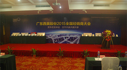 2015年7月10日,廣東西奧物聯網科技股份有限公司全國經銷商大會在東莞尼羅河大酒店隆重召開,現場參會合作伙伴代表超三百名,實現現場簽訂合同額4000多萬元、現場現金回款500多萬元、新加盟經銷商過百位的驕人成績。CCBD中擂助力西奧打造中國智慧城市綜合解決方案領導者品牌,使本次經銷商大會取得圓滿成功。