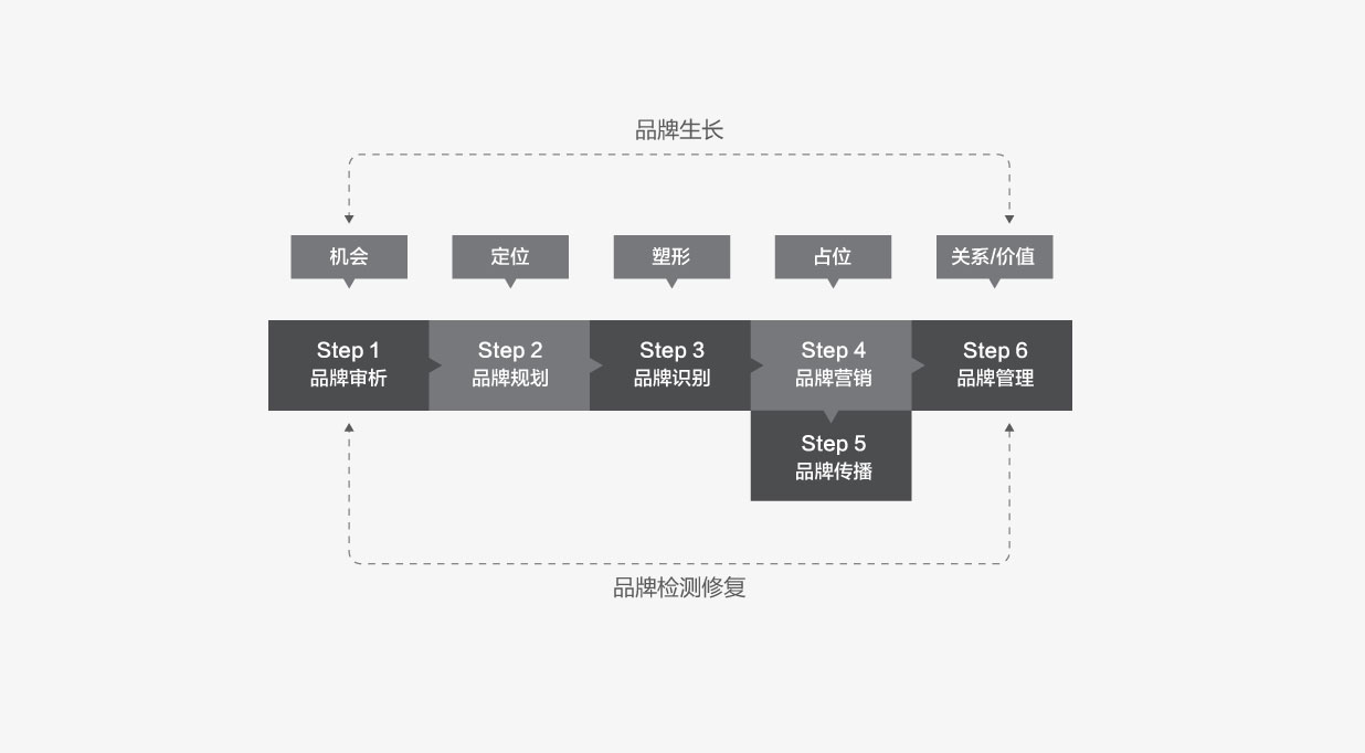品牌規(guī)劃+品牌識(shí)別+品牌營(yíng)銷(xiāo)+品牌傳播+品牌管理